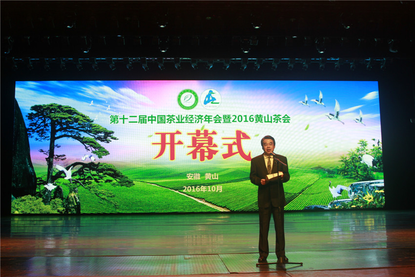 10月25日上午,第十二届中国茶业经济年会开幕式在安徽黄山隆重举行。第十届、十一届全国政协副主席白立忱,中华全国供销合作总社党组成员、理事会副主任肖仲凯,安徽省政协原副主席李宏塔,贵州省人大常委会党组原副书记、副主任、贵州省茶叶协会会长禄智明,农工党中央原副主席、原云南省副省长、省政协原副主席、云南省茶叶流通协会会长陈勋儒,中华全国供销总社科教部部长闵学冲,民政部民间组织管理局原局长孙伟林,中国茶叶流通协会常务副会长王庆,安徽省农委主任孙正东,贵州省供销社原主任、贵州省茶叶协会常务副会长张达伟,青岛市原副市长张元福,国务院发展研究中心研究员张立群,云南省临沧市市委常委、副市长许晓东,河南省信阳市副市长郑志强、国家发改委城市和小城镇改革发展中心副主任、总规划师沈迟,全国供销合作总社杭州茶叶研究院院长尹祎,安徽农业大学党委书记宛晓春,浙江大学农学院副院长王岳飞,以及中国茶叶流通协会的二十余位兼职副会长,及国内著名茶叶企业代表和黄山市直单位的有关同志一千五百余人出席了开幕式。