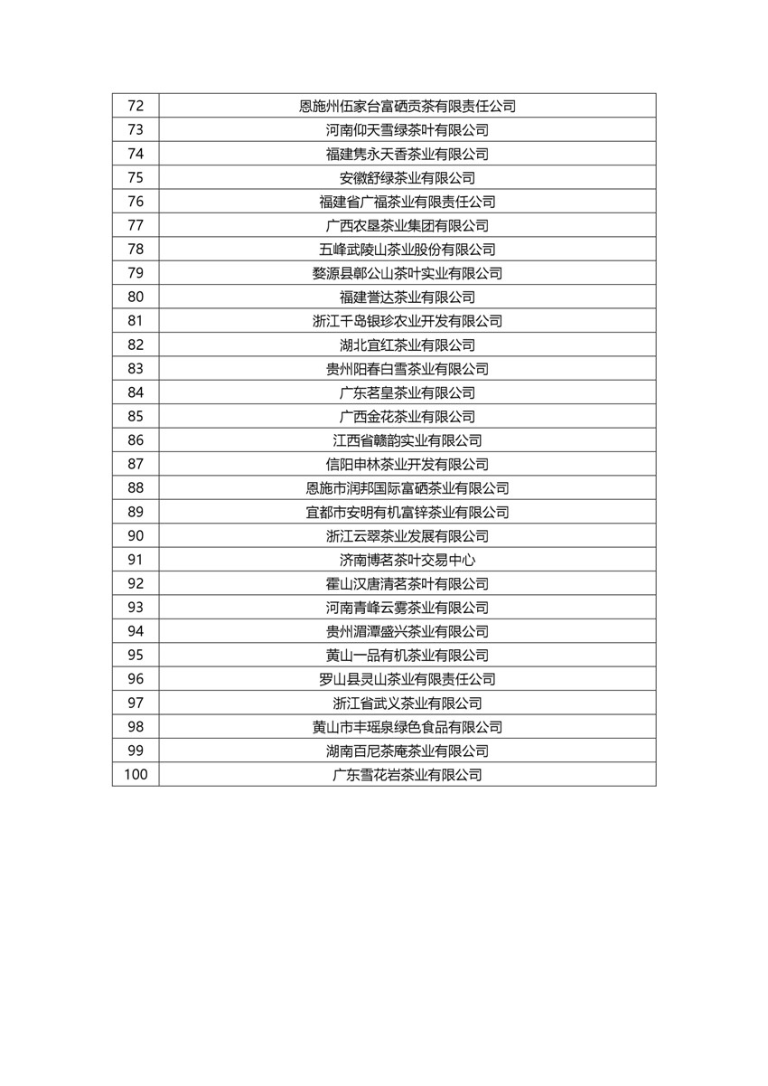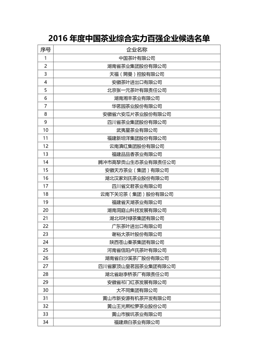 关于公示《2016年度中国茶业综合实力百强企业候