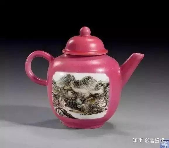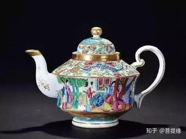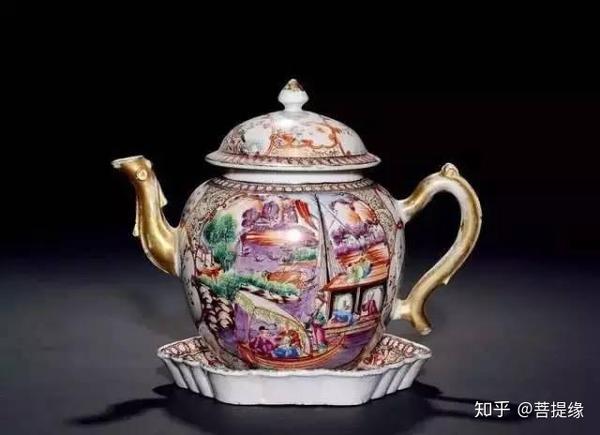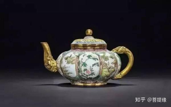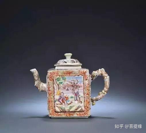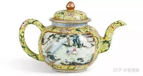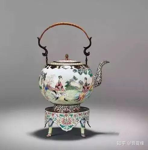 清乾隆 铜胎画珐琅彩人物提梁茶壶
