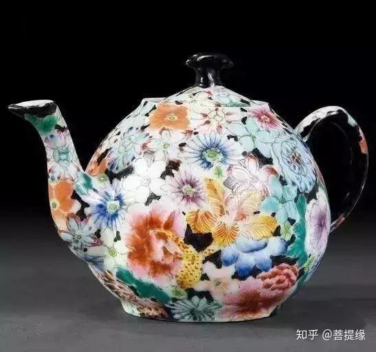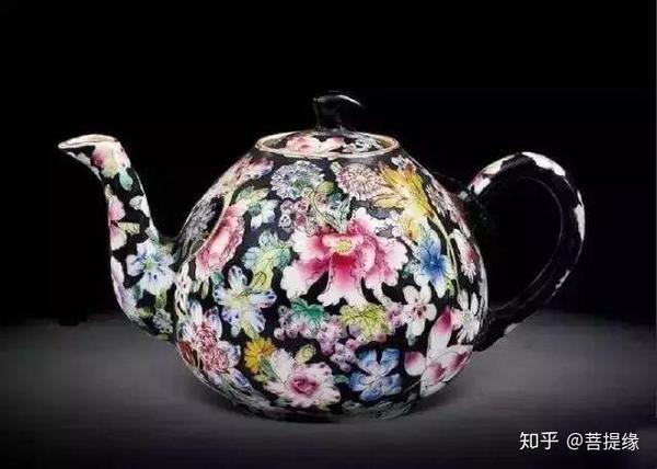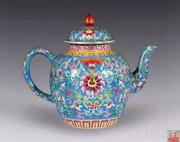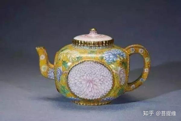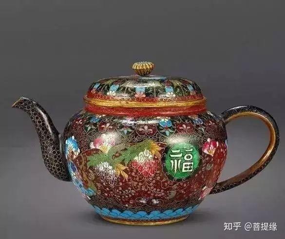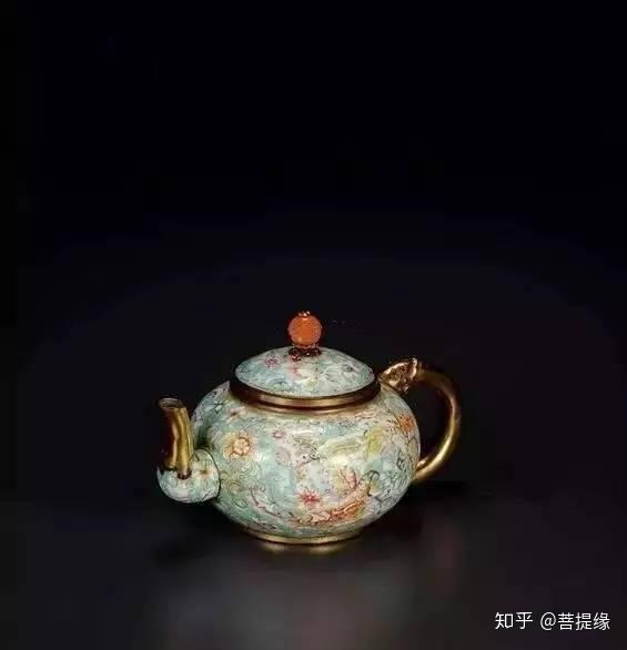 清乾隆 铜胎掐丝珐琅花卉纹茶壶