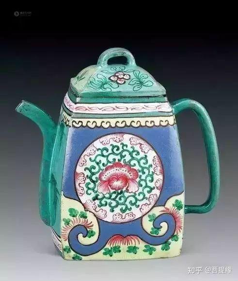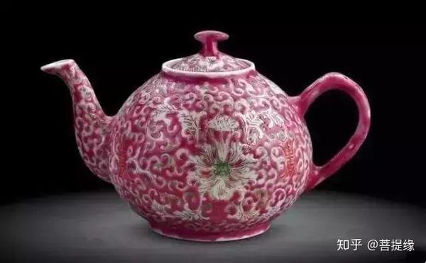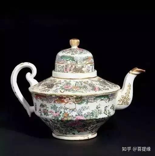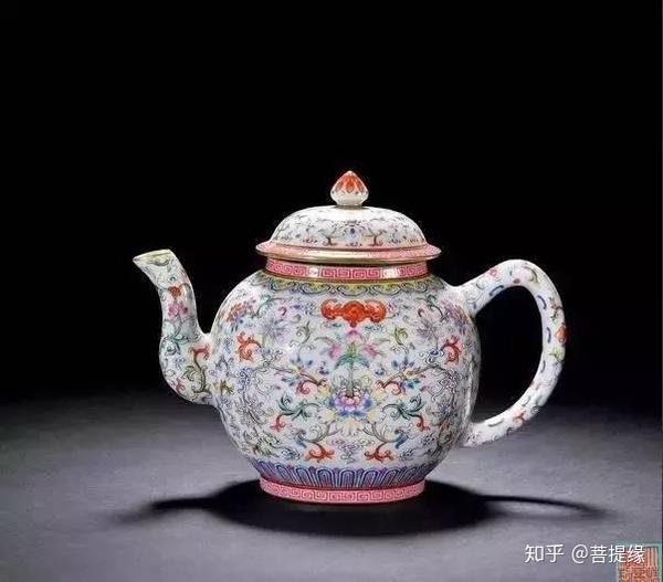 清嘉庆 粉彩蕃莲福寿纹茶壶