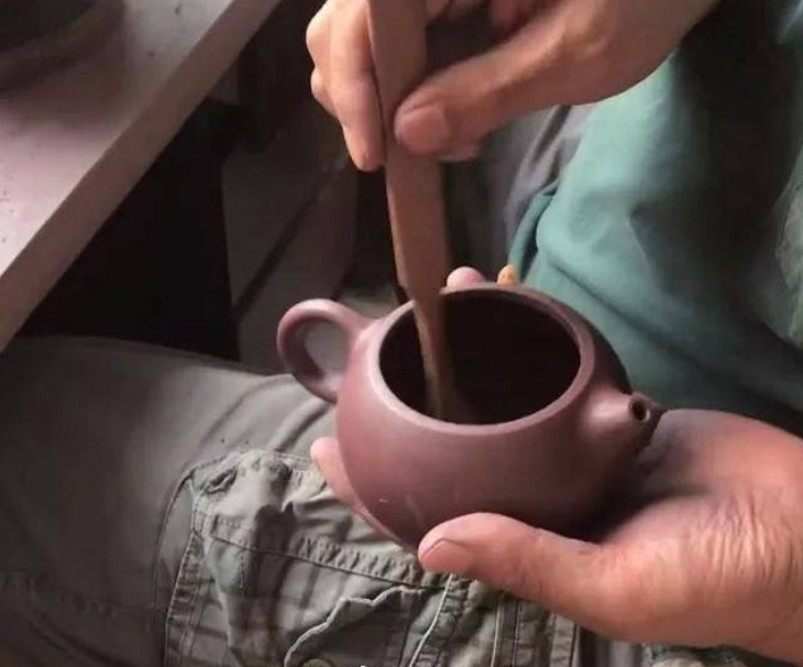 手工茶壶内部的纹理清晰可见