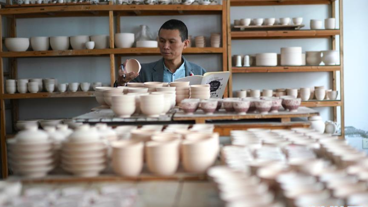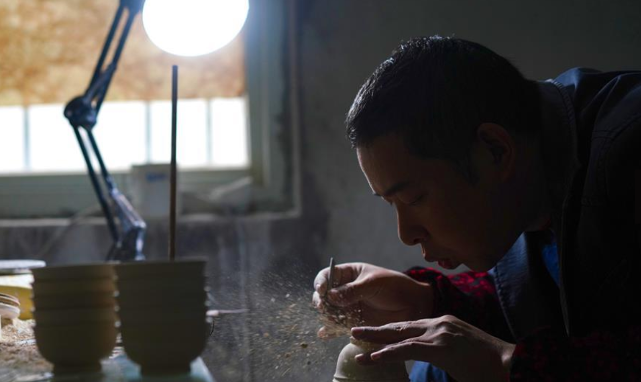 薄胎瓷亦称“蛋壳瓷”,是江西景德镇传统瓷器品种中最久负盛名的特种工艺产品之一,特点为瓷胎薄如蛋壳、透光。在江西省景德镇市高新区,“快雪时晴”薄胎瓷制作团队将青花、粉彩等多种景德镇传统陶瓷工艺相互融合,制成通透、纤薄的瓷碗和瓷杯。团队负责人刘震告诉记者,每件产品需经历十几道纯手工工序,且耗时至少两个月以上。工匠精神跃然“杯”上。