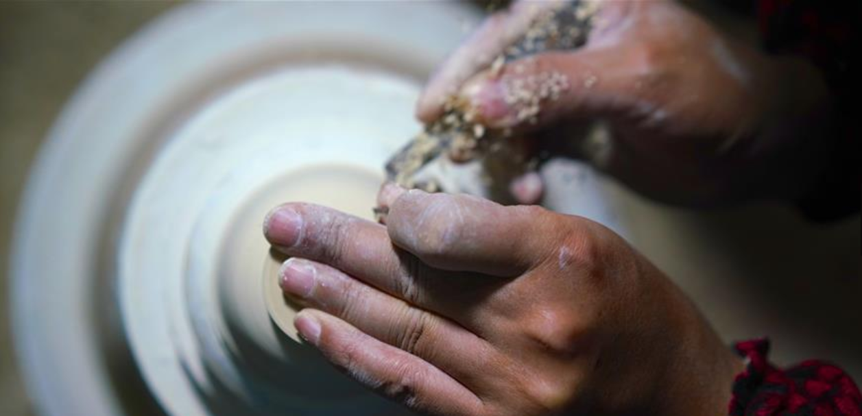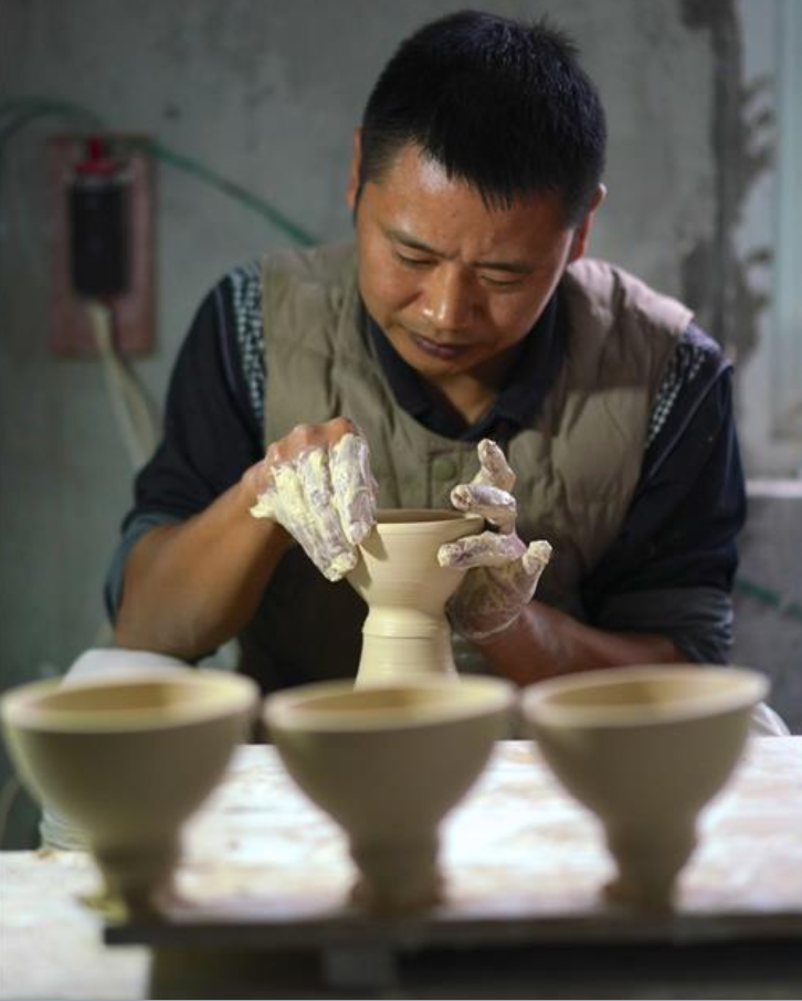 10月19日,团队成员张荣在进行拉坯工序。