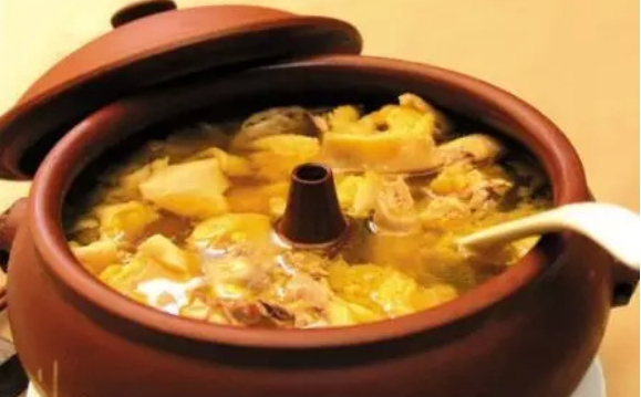 建水紫陶用作蒸具,可蒸鸡、鸽等肉食品,鲜美异常。特别是用建水紫陶汽锅炖出的鸡肉,味道比用别的汽锅炖出的味道更为鲜美。因而建水紫陶汽锅深受外商欢迎,远销美国、日本及东南亚一带。若在汽锅中放上“三七”,称为“三七汽锅鸡”,有较好的滋补作用,称为“培养正气”,成为云南的名特小吃之一绝。