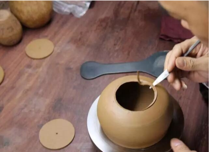 紫陶,快轮拉胚成型(与景德镇制瓷工艺相同)。