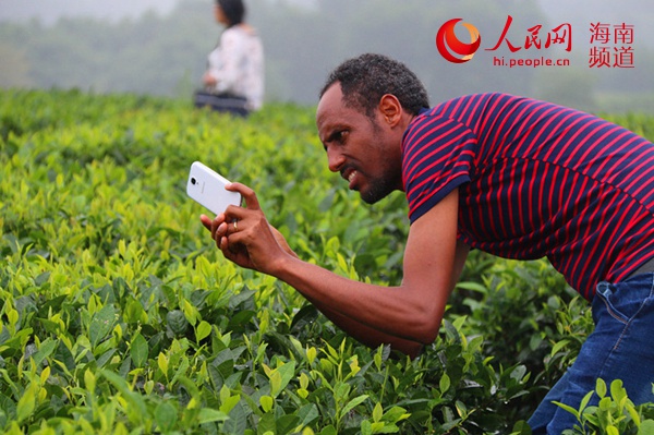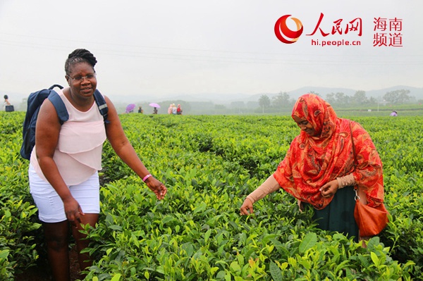 随后,考察团一行来到白沙农场茶园,一进茶园,成员们就被眼前的景象所吸引,他们一边拍照留念、体验采茶活动,一边听茶园负责人介绍茶园发展历程和茶叶种植。“绿茶的产量高吗?我们在国外能不能买到?”对于不了解的问题,成员们还不时的提问,希望可以得到更多的信息。茶园负责人也对他们的问题进行一一解答。