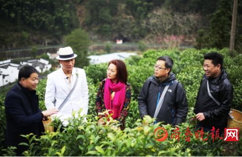 众嘉宾在谢老的指导下采摘黄山毛峰