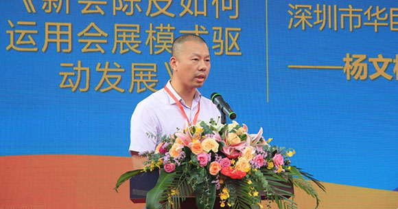 深圳市华巨臣实业集团总裁杨文标在开幕式上以《新会陈皮如何运用会展模式驱动发展》为题进行演讲,表示希望未来能与新会展开多层次的合作,利用华巨臣全国大联展平台以及海内外的资源,全面提升新会陈皮及柑茶的品牌效应,深度开拓国内市场,打通国内、国际茶产业链供销渠道,把新会陈皮、柑茶带到全国各地、走向世界。