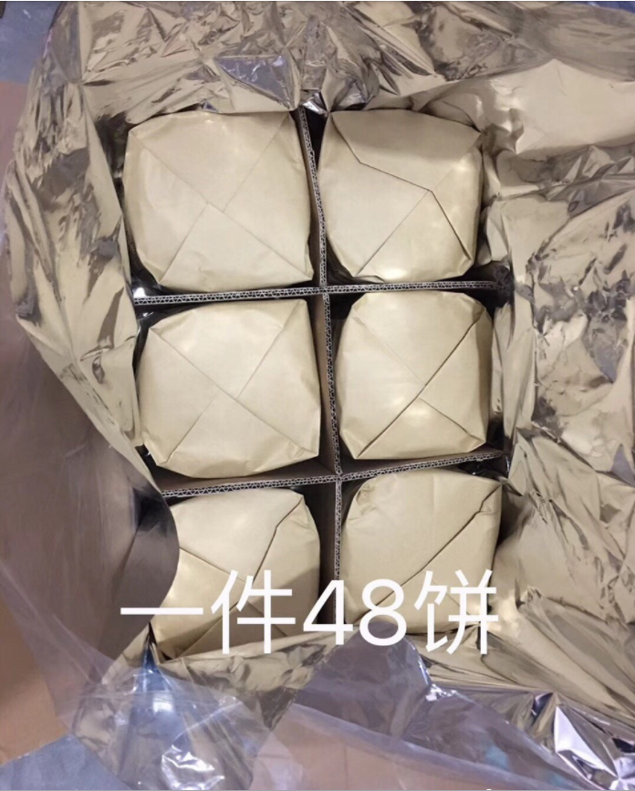 茶饼的三种不同存储包装:包装纸、旧款铝箔包装袋、新式铝箔包装袋。