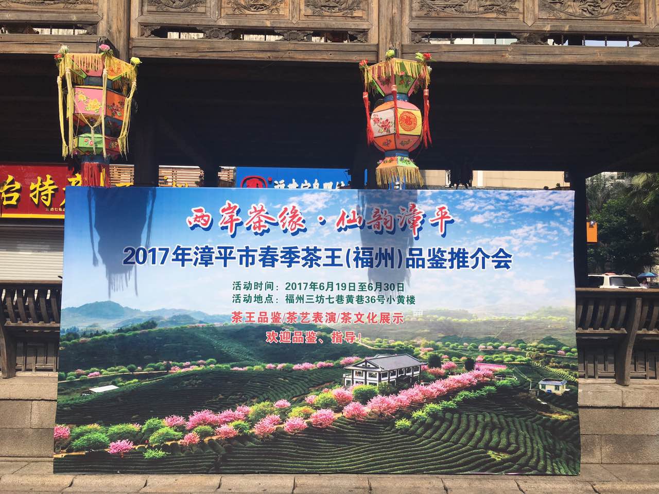2017年6月24日上午,“两岸茶缘•仙韵漳平”2017年漳平市春季茶王(福州)品鉴推介会在福州三坊七巷隆重举行。活动由漳平市人民政府、福建省茶业协会主办;漳平市委宣传部、漳平市农业局、漳平市旅游局、漳平市永福镇人民政府、漳平市南洋镇人民政府、漳平市双洋镇人民政府、漳平市茶叶协会、福建省茶叶学会、福建张天福茶叶发展基金会、福州市三坊七巷保护开发有限公司、中华海峡两岸教育文经推广协会小黄楼管理部承办。