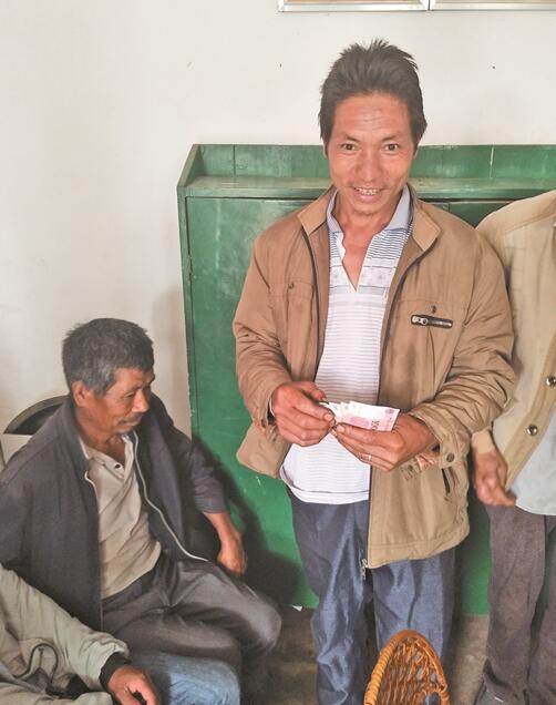 杨立平一家4口务农为生,自己也种着几亩茶地。去年,在邻居的介绍下他开始帮森茂茶叶公司采茶,每年可以增加6000~7000元的收入。收入上去了,日子也慢慢有了改变。“在这里收茶叶还是好呢,基地茶山的路修得很好,平时做工也不累,农闲的时候做一下,收入也还不错。一会领完钱,就准备到县城里帮媳妇换个手机。”他喜滋滋地说。