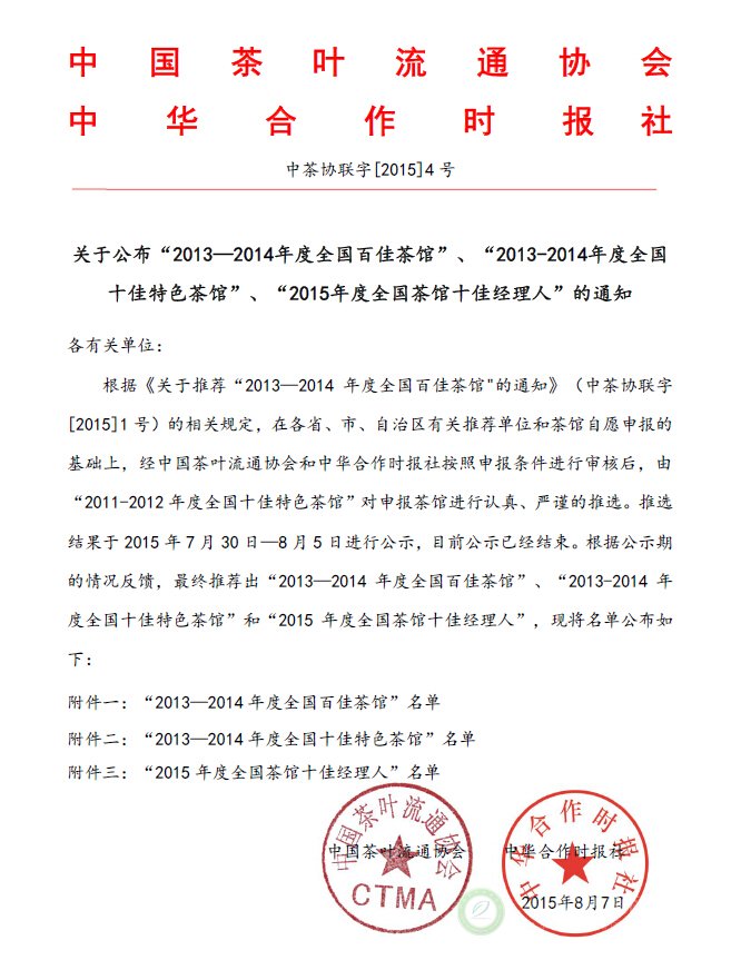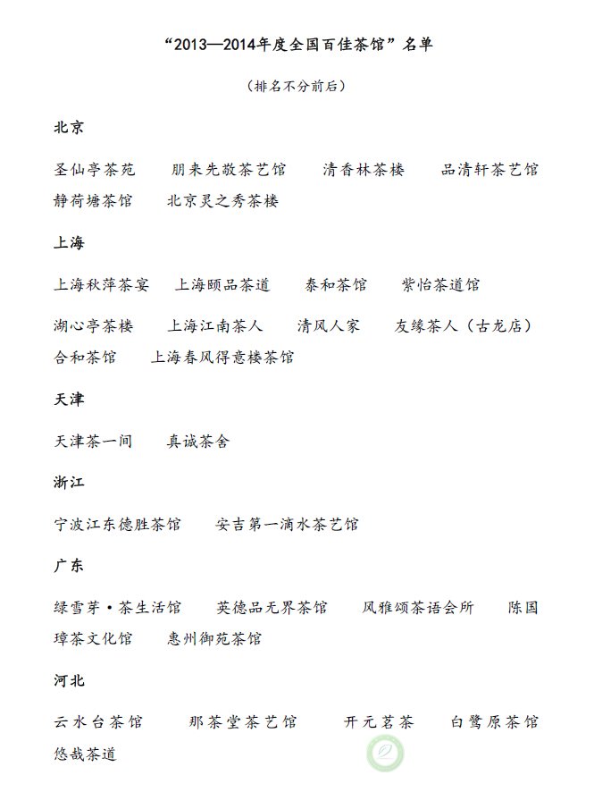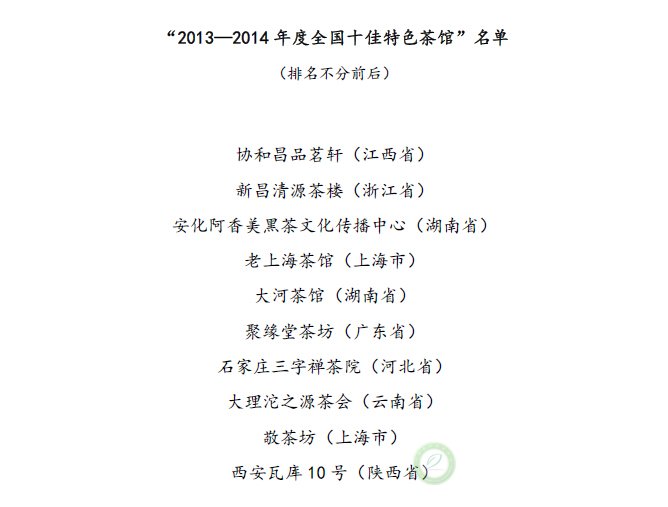 关于公布“2013—2014年度全国百佳茶馆”的通知
